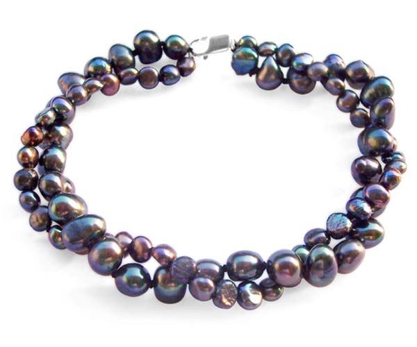 This unique irregular shaped baroque pearl bracelet consists of two rows of different sized, unusual baroque shaped pearls.