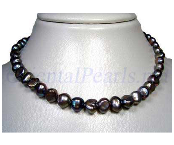 It is made of unusual baroque shaped 7-8mm genuine freshwater pearls at a length about 17 inches.