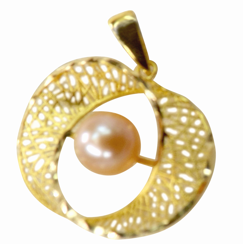 This Beautiful 18K Yellow Gold Circle of Ribbon Design Pearl Pendant is ready to turn some heads! It has the look of lacy gold ribbon or a fancy Calligraphy letter “O”. It has a large bail that will accommodate a chain or cord up to 2.5mm thick for versatility. In the middle is a 5-6mm round pearl.
