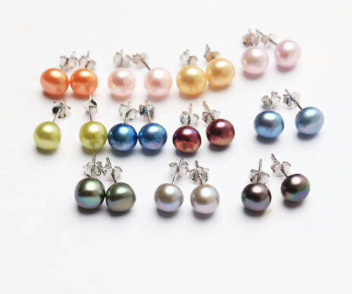 These 7-8mm or 8-9mm genuine freshwater button shaped real stud pearl earrings are classical and timeless. Both of them are set on 925 sterling silver. The backings are caved silicone backings and 925 sterling silver posts with 7 layers of 18k white gold over to prevent the pure silver from tarnishing. So even the most sensitive ears can wear them.