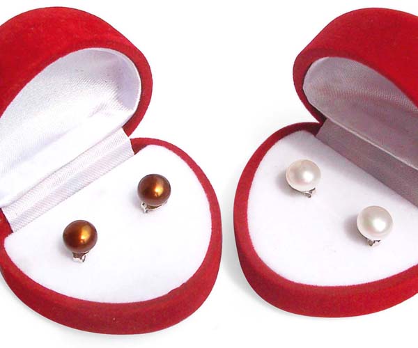 The price is for 1 pair of stud pearl earrings while the picture intends to show various-colored pearls we have in stock. Also, red box is for display only as earrings will be packaged in a pouch for safe-keeping and gift-giving. There are quite a few different colors and sized pearls available. Please use drop down menu to choose your preferred color.