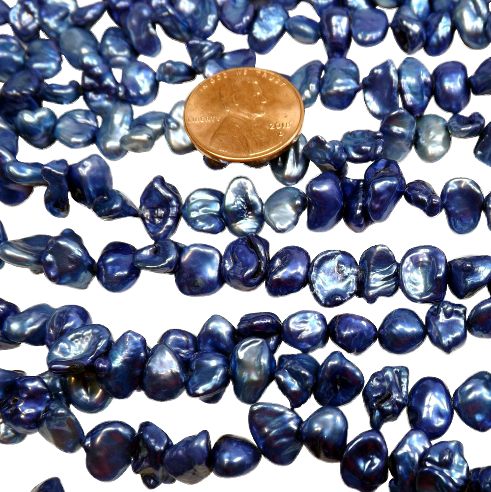 Navy Blue Colored Nice Quality Keshi Pearls 5-8mm on a Loose Temporary Strand
