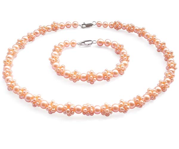 This unique customer designed round pearl necklace and bracelet is also a perfect choice for a bride.