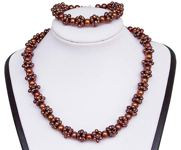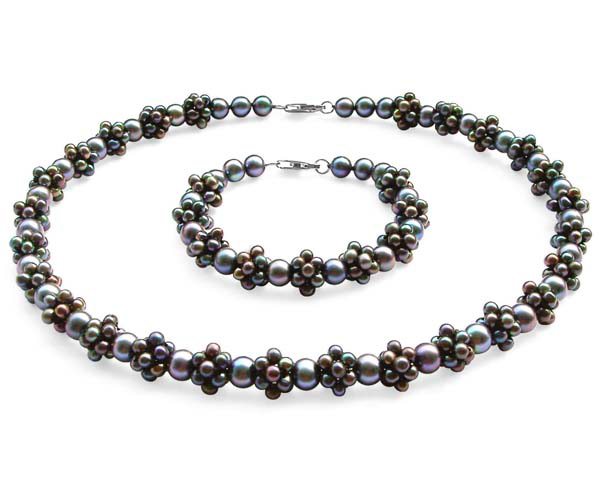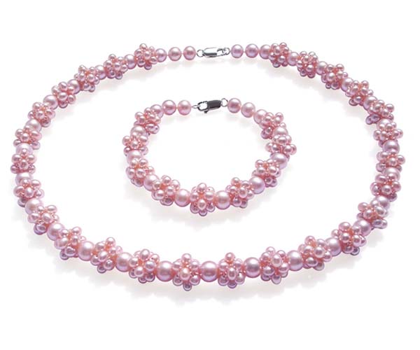 Made of 7-8mm round pearls and 3-4mm semi-round pearls, this unique pearl jewelry set will make a woman at any gathering shine with an incredible elegance and uniqueness!