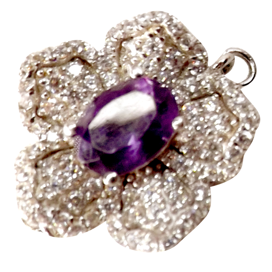 Looking to add some flair to your next jewelry project? Look no further than this Ameryst centered with diamond accent at a large 20mm flower shaped silver clasp! This stunning clasp, with a thickness of 10mm and a weight of 6.2 grams. It is perfect for making a statement with your big necklace.