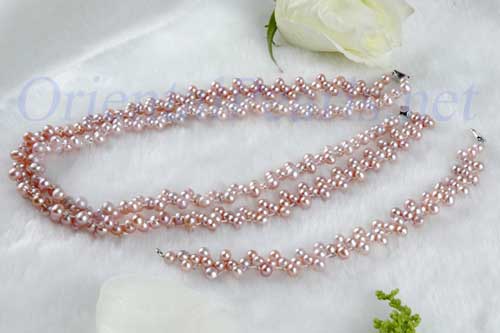 The set is Intricately intertwined with small AA+ naturally colored round pearls in 3 arrays. It is not only one-of-a-kind, but also perfect for the season and it will take you to anywhere.