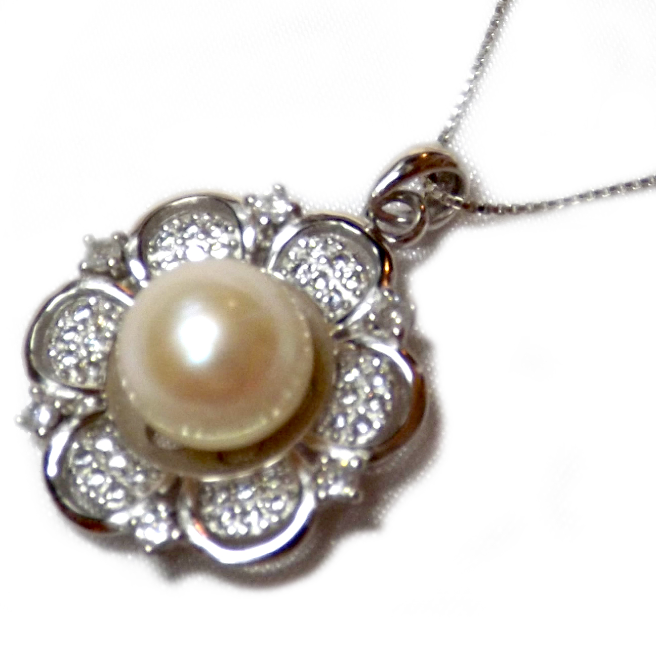 This gorgeous pearl flower pendant will make her so happy as it is not only large but also pretty. It is set in flower shaped pendant setting with petals encrusted with tiny lab-created diamonds around. It comes with a 16″ long 925 sterling silver box chain to make it a beautiful necklace. You can take it anywhere.