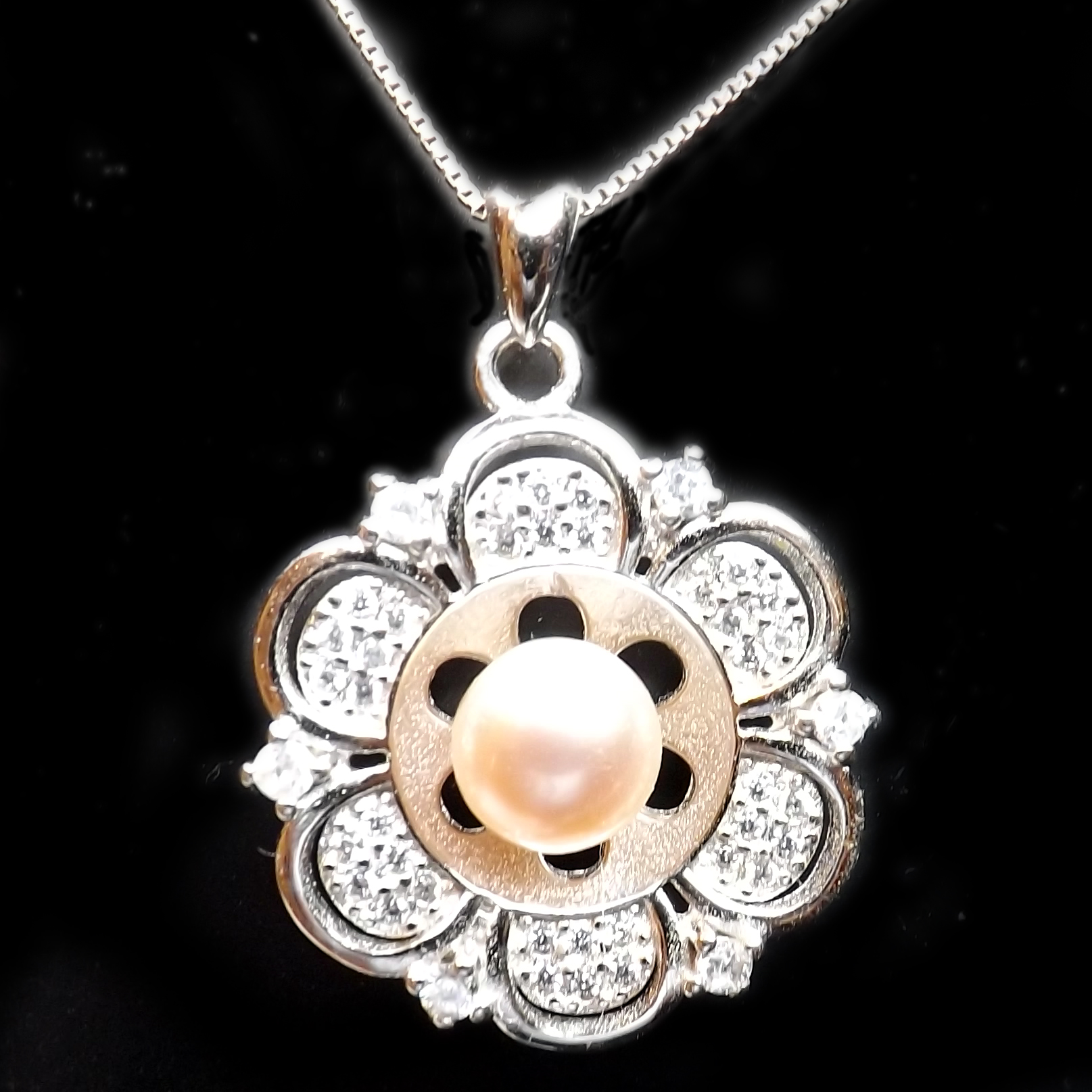 A genuine freshwater pearl button pearl at 9-10mm is set in this middle of the flower. 4 colors of pearls are available for you to choose from the drop down menu. They are Black, White, Pink and Mauve.