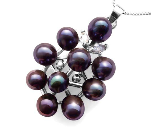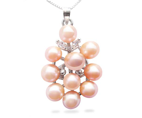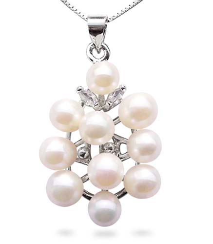 Made of 10 genuine cultured drop pearls at size 5-6mm, this pendant is set in a flower shaped design that has a dimension of approximately 3/4″ x 1″ in two dimensions.