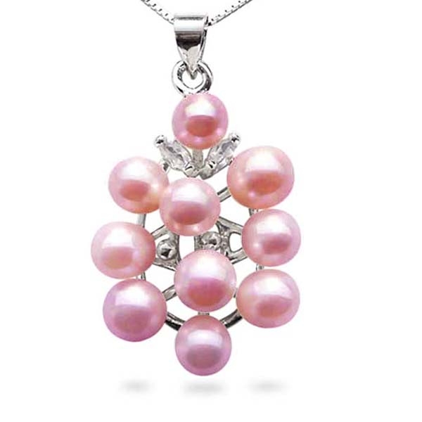 Flower Shaped Cluster Pearl Pendant with Free Sterling Silver Chain