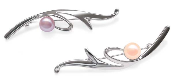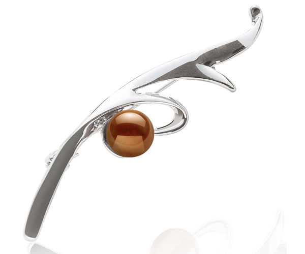Genuine 8-9mm pearl brooch is set in 18k white gold filled setting in a simple leaf design. With high luster of an 8-8.5mm cultured freshwater pearl, it brings out the best of a real pearl with its long lasting white gold filled setting.