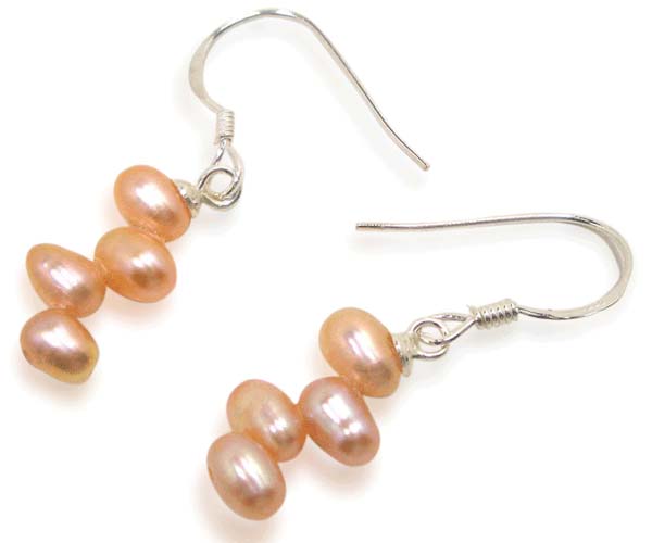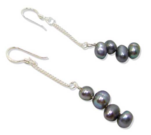 One is the french style silver earrings with genuine drop shaped pearls approximately 5-6mm in size. Three colors of pearls are available including: black, pink pearls, white and mauve colored pearls.