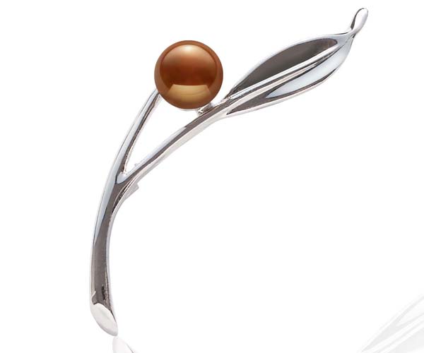 A simple but elegant pearl pin with one genuine 8-8.5mm freshwater pearl set at the top with 18k white gold filled setting which brings out the best of a genuine luminous pearl.