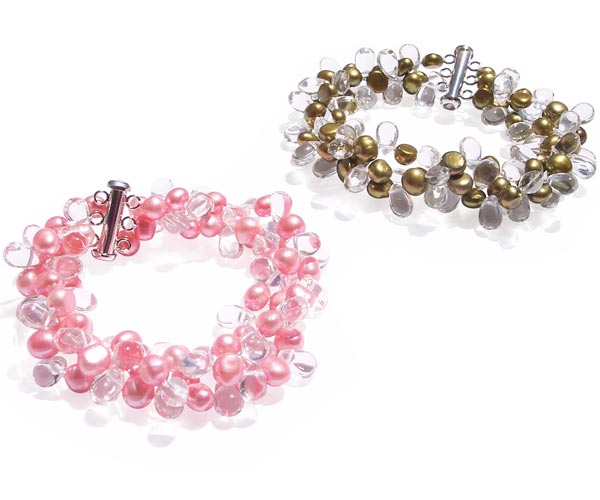 Top quality freshwater pearls and translucent crystals are combined to make this beautiful 3-row bracelet. An exclusive design that can only be found here at orientalpearls jewelry store.