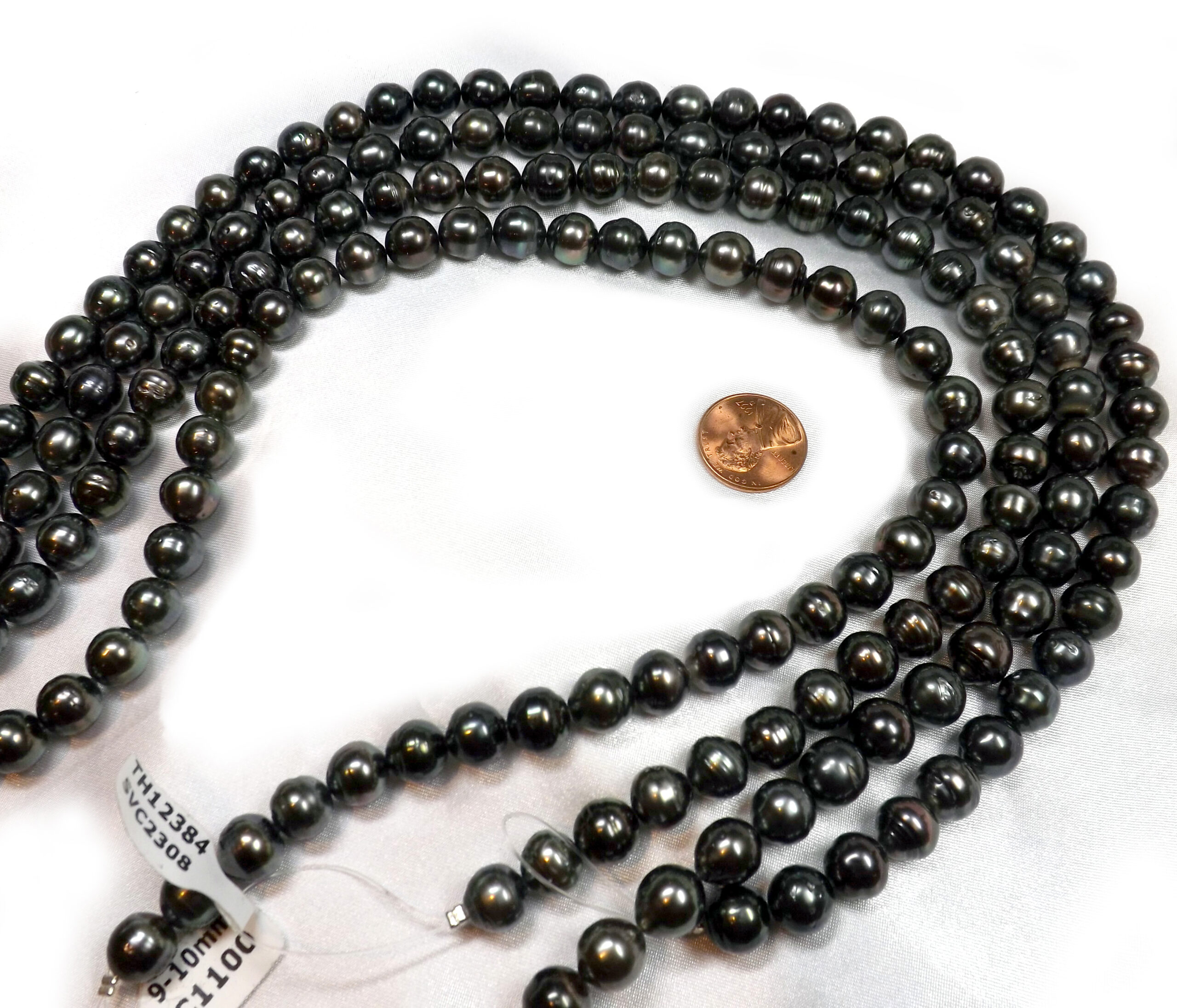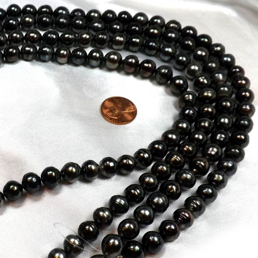 The difference between different graded pearls is in the roundness, still the overall impression is still a strand of round pearls. Comparing with others who are selling Tahitian baroque pearls at much higher prices. These pearl strands are priced at an incredible low wholesale price. We guarantee you will not be able to find anywhere else!