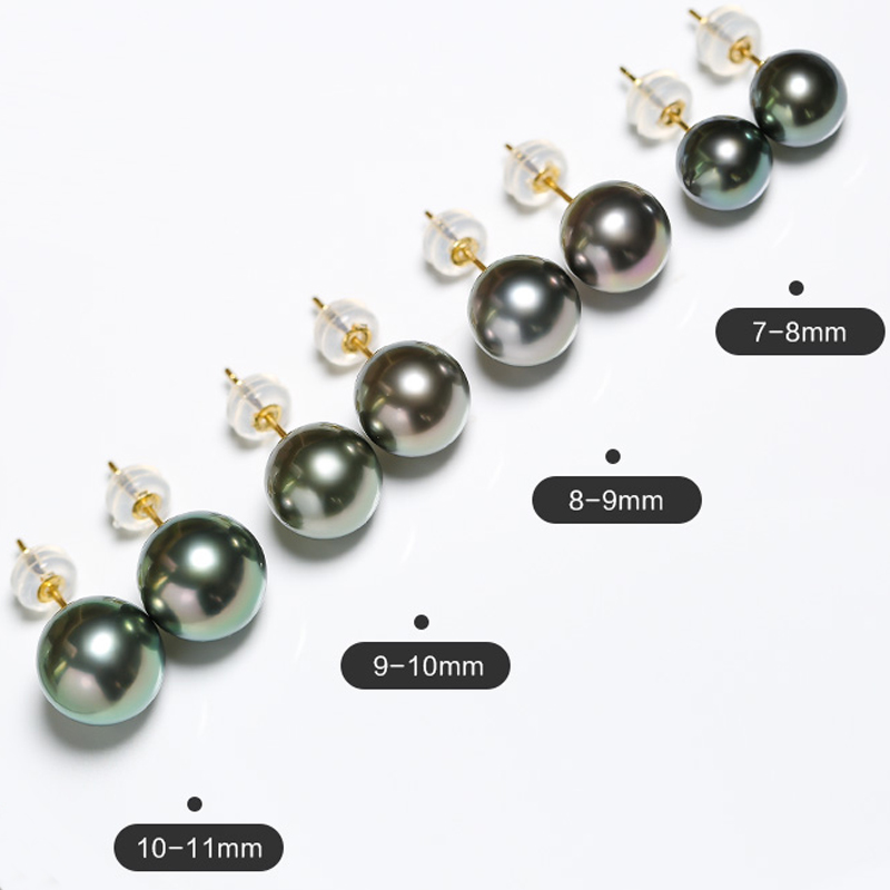 As the picture shows, these Tahitian pearls come either with a hint of green. It is also called Tahitian peacock color, as well as the Tahitian black color.