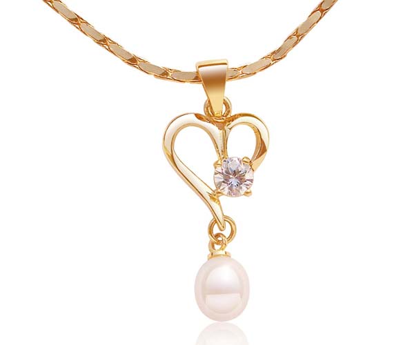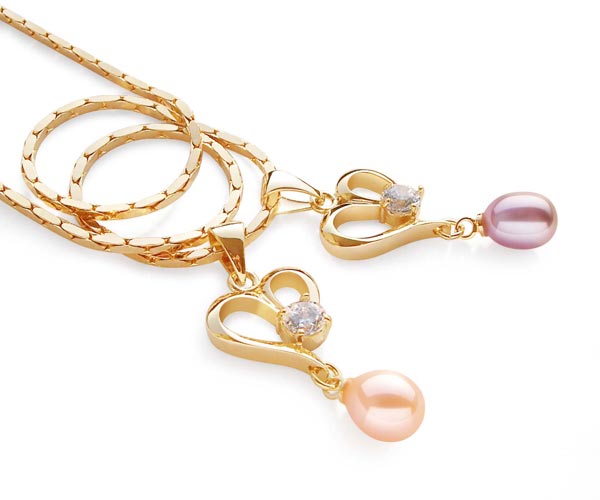The pendant has a genuine 7-8mm teardrop-shaped pearl and has an approximate size of 1″ x 1/2″. The setting is made of base metal with 18K yellow gold or white gold overlay for tarnish-free protection.