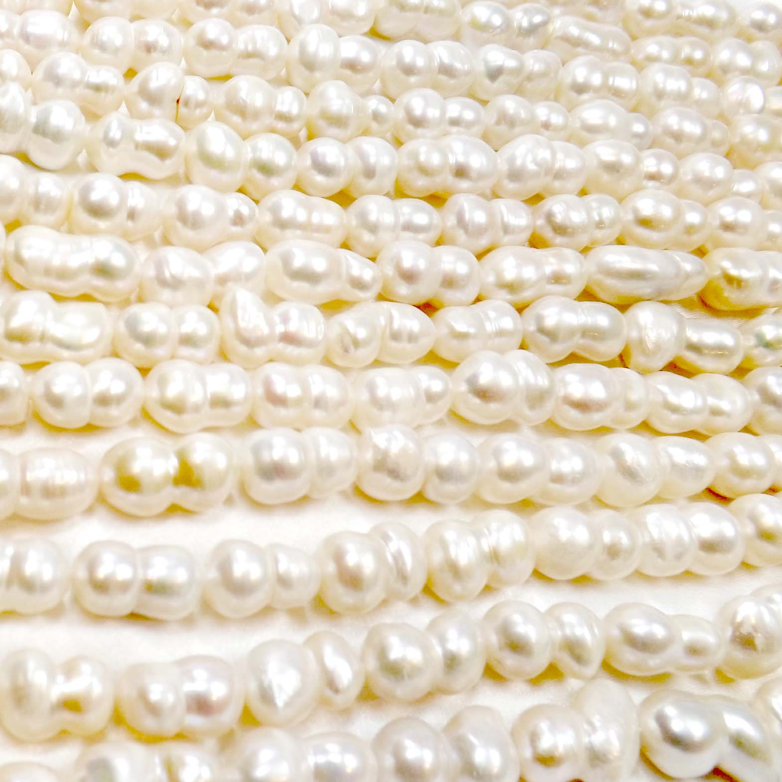 These large peanut pearl strands come with high luster and are approximately 9-10mm in width and 14-16mm in length.