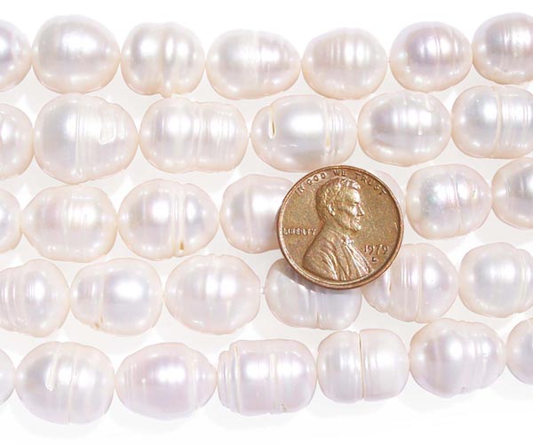 These large 12-13mm rice or oval shaped pearls have natural dents which shows they are made of real pearls and not plastic made imitation pearls. Due to the many requests we have received for these pearls we have started to carry them. Customers love their natural and unique look!
