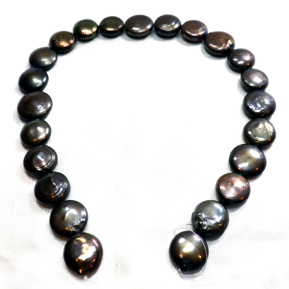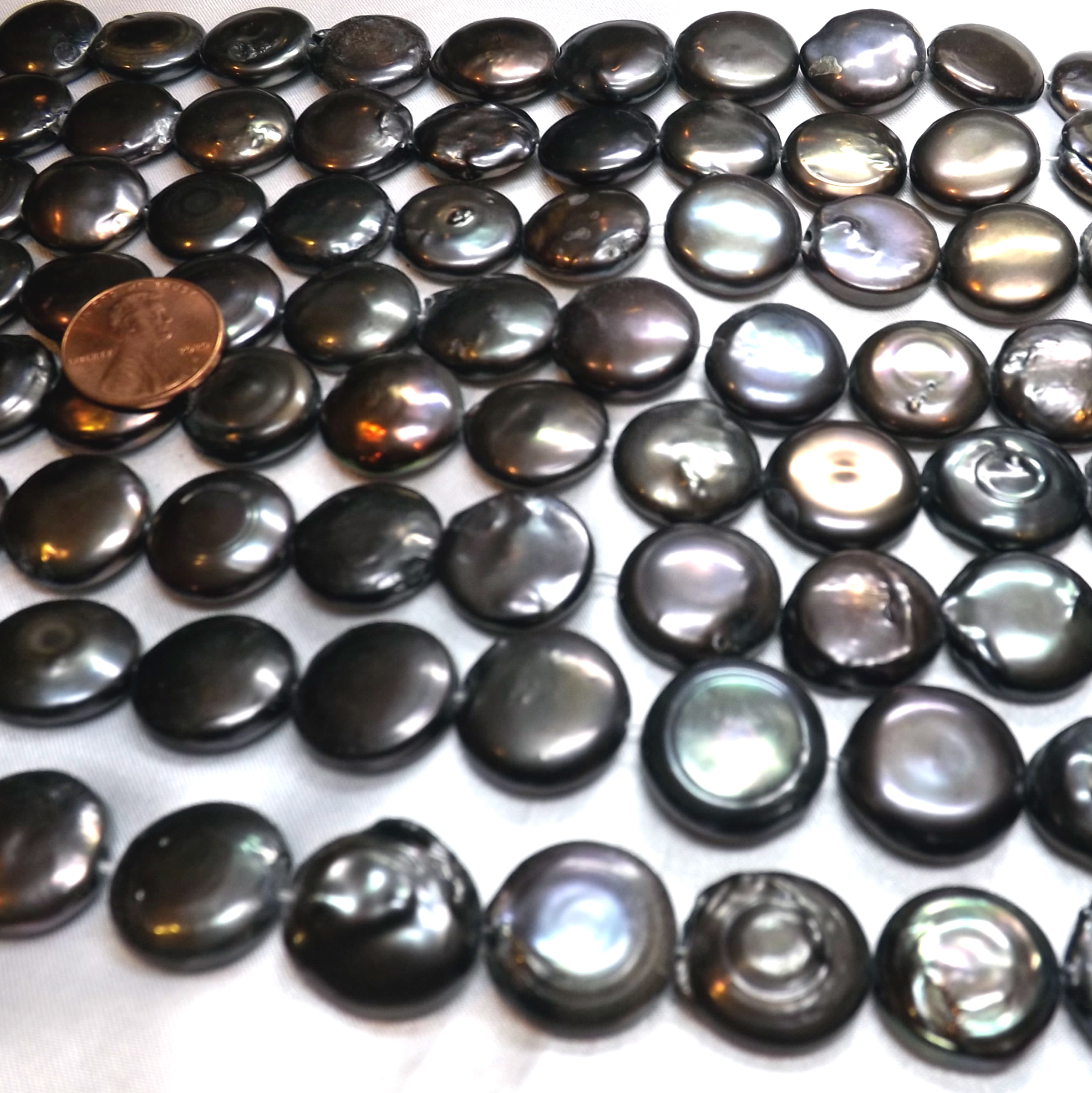 Pearl Jewelry made with these huge sized flat black coin pearl strands will really make an impression. As you can make them into a necklace on a strand or as a center piece for a necklace or a pair of earrings depending on your creativity.