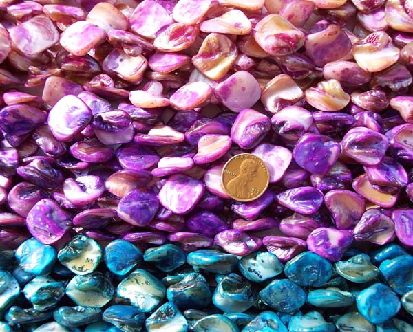 These are irregular mother-of-pearls strands at 15″ long. There are approximately 21 pieces on it. Each strand has an approximate weight of 50 grams.