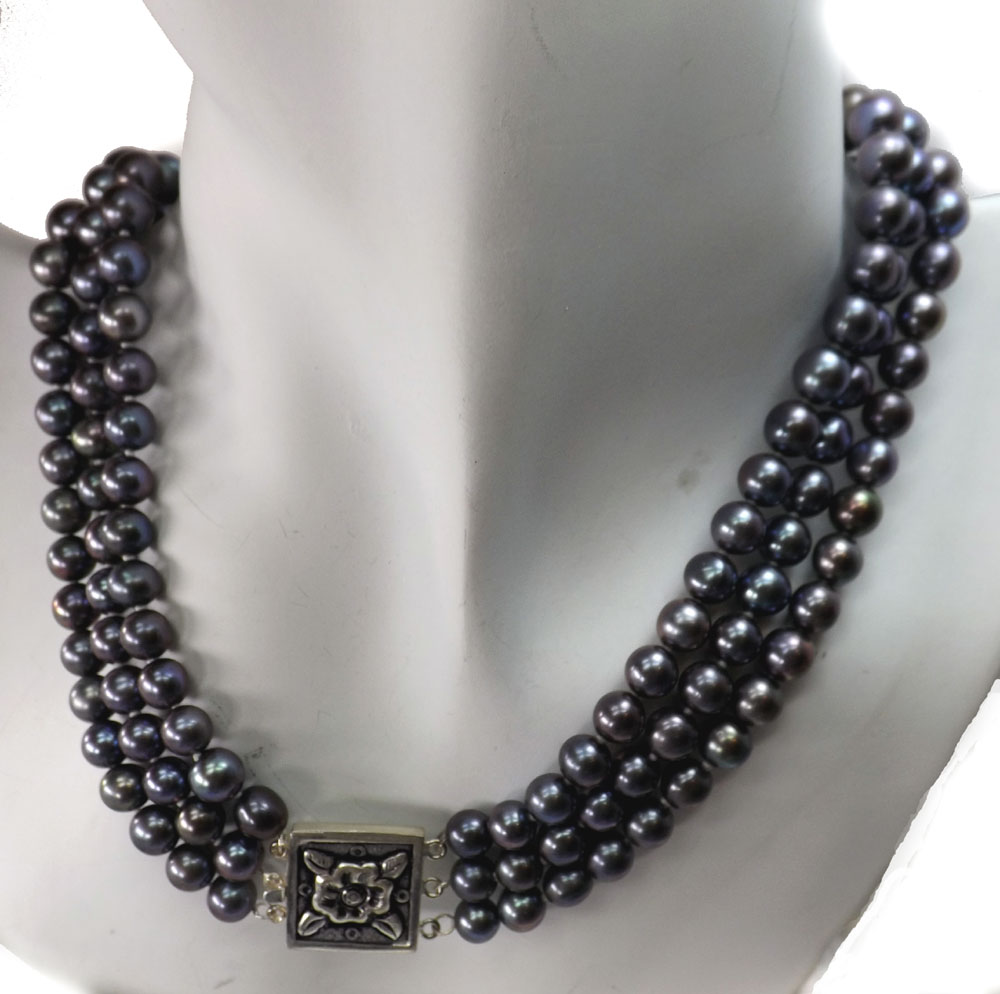The necklace is finished by either a stamped 925 sterling silver 3-row tube clasp, as showing in the pictures. Those clasps made of heavy weighted sturdy 925 pure sterling silver. Â