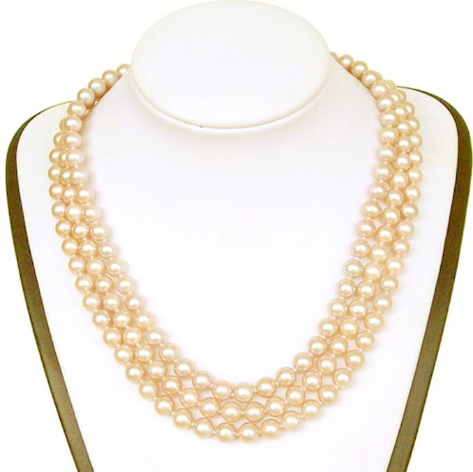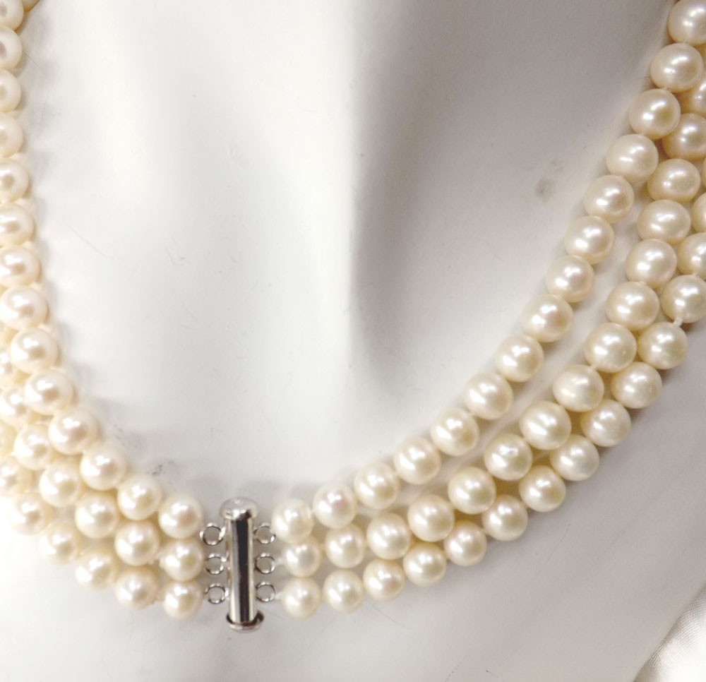 I HAVE LOOKED FOR YEARS FOR THE PERFECT REPRODUCTION PEARL NECKLACE. THE JACKIE O FAMOUS 3 ROW WHITE PEARL NECKLACE. I FOUND YOUR WEBSITE BY WAY OF A LINK BY COMPLETE ACCIDENT. BUT I AM SO GLAD I DID. I ORDERED THE 7mm-8-mm ROUND WHITE PEARL NECKLACE FINISHED WITH THE RECTANGLE 925 STERLING SILVER CLASP. AND I HAVE TO SAY IT IS THE MOST GORGEOUS NECKLACE. I ABSOLUTELY LOVE IT. IT IS NOW MY MOST PRIZED PROCESSION !!