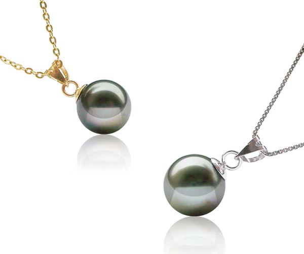 The genuine Tahitian pearls is AAA- quality in either round or pe (ondrop shaly 14k white gold setting is available now). The pearls have nice luster, and hardly any markings or flaws, in truly Tahitian black color, the most sought-after color for Tahitian pearls.