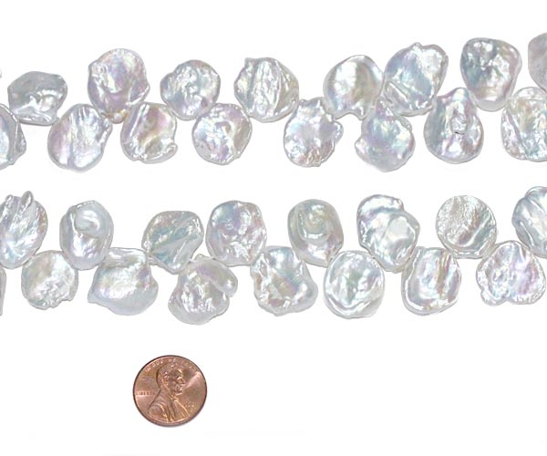 These are large and rare very thin top drilled keshi pearls at approximately 16-17mm in length and 15-16mm in width.