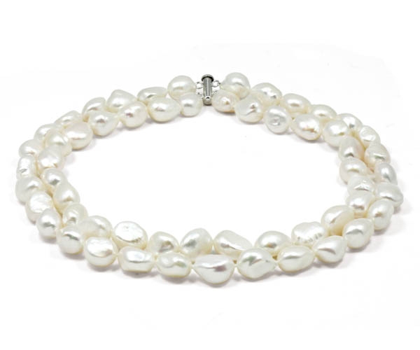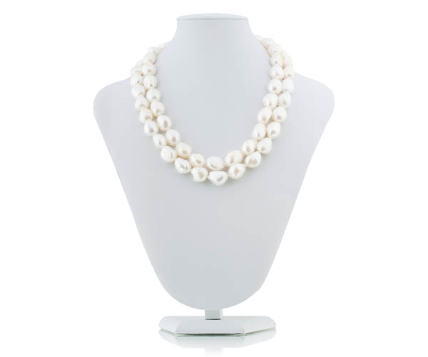 This rare 13-14mm pearl necklace has a length of 17in and 18in. We finish it with a 2-row sterling silver clasp.