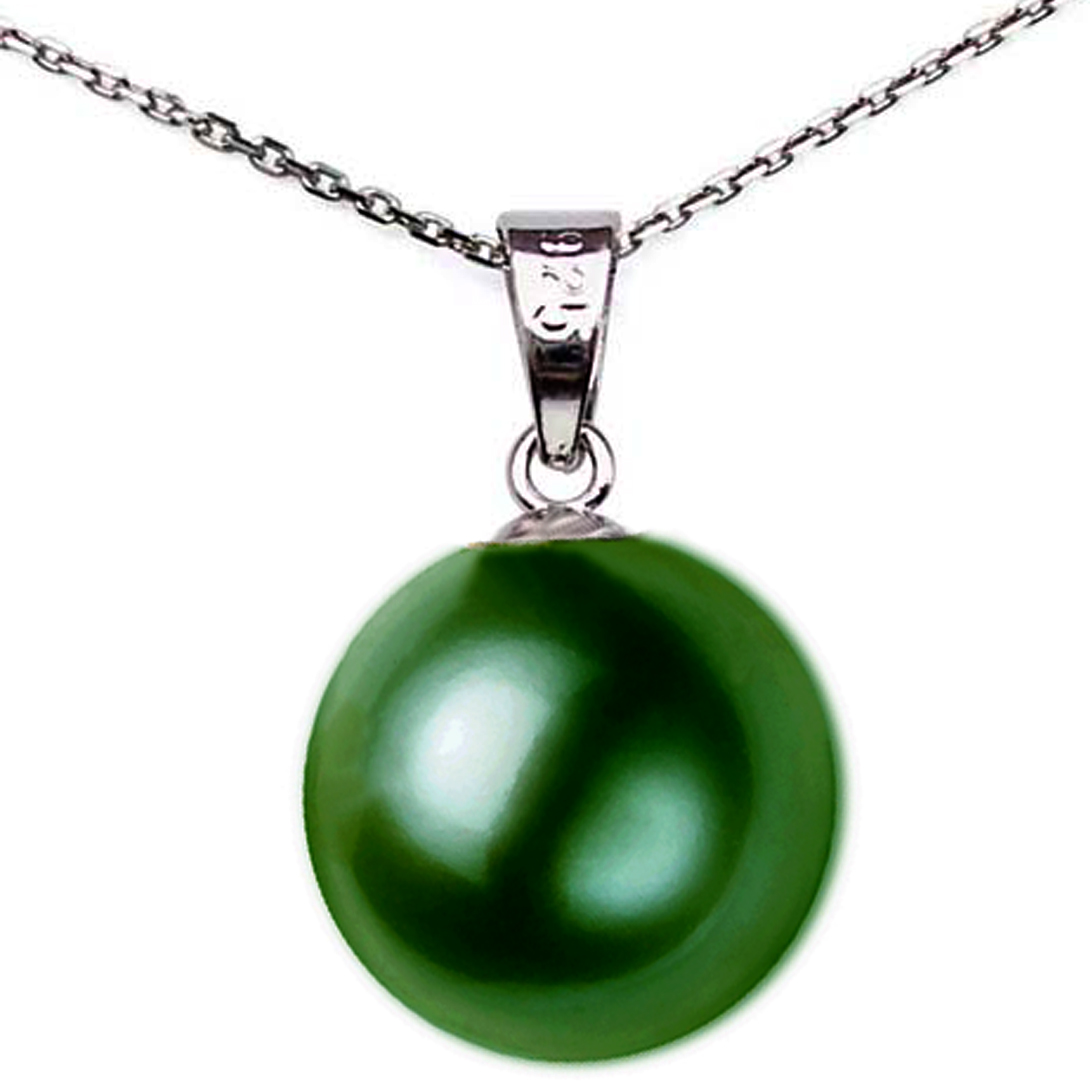 This green pearl pendant is made of a large sized, AA+ high quality round freshwater pearl. It is set in 925 pure sterling silver. Absolutely stunning and beautiful.