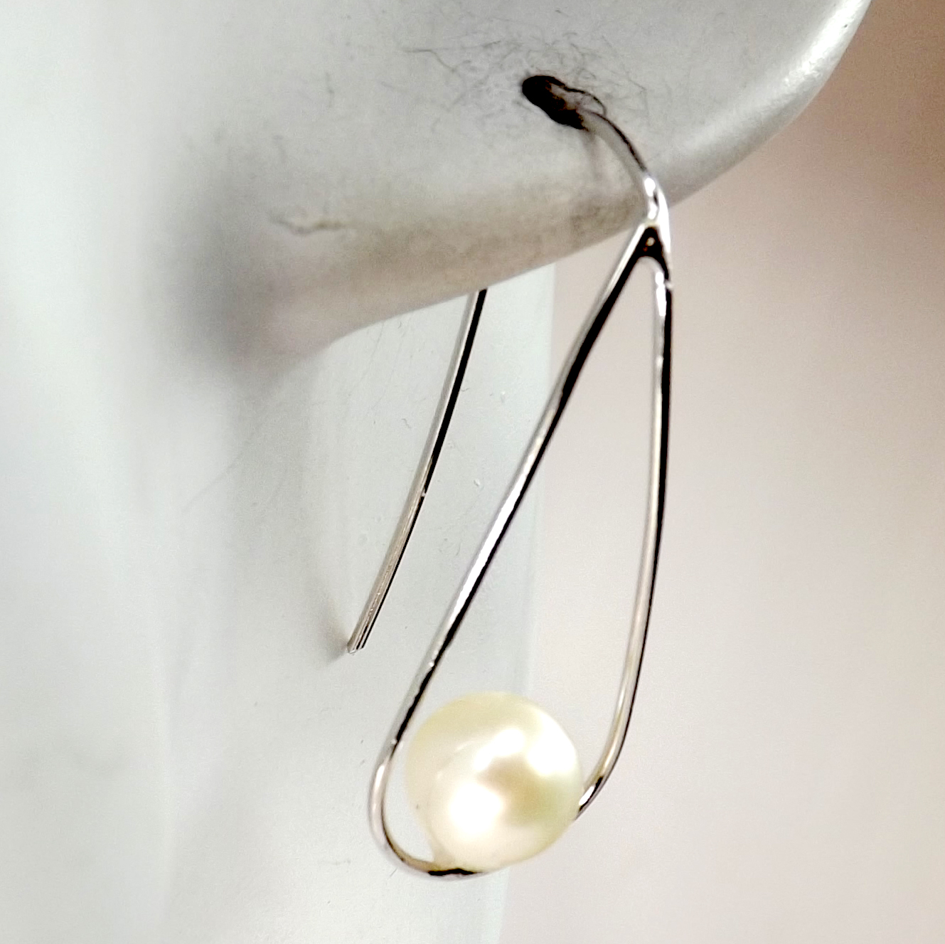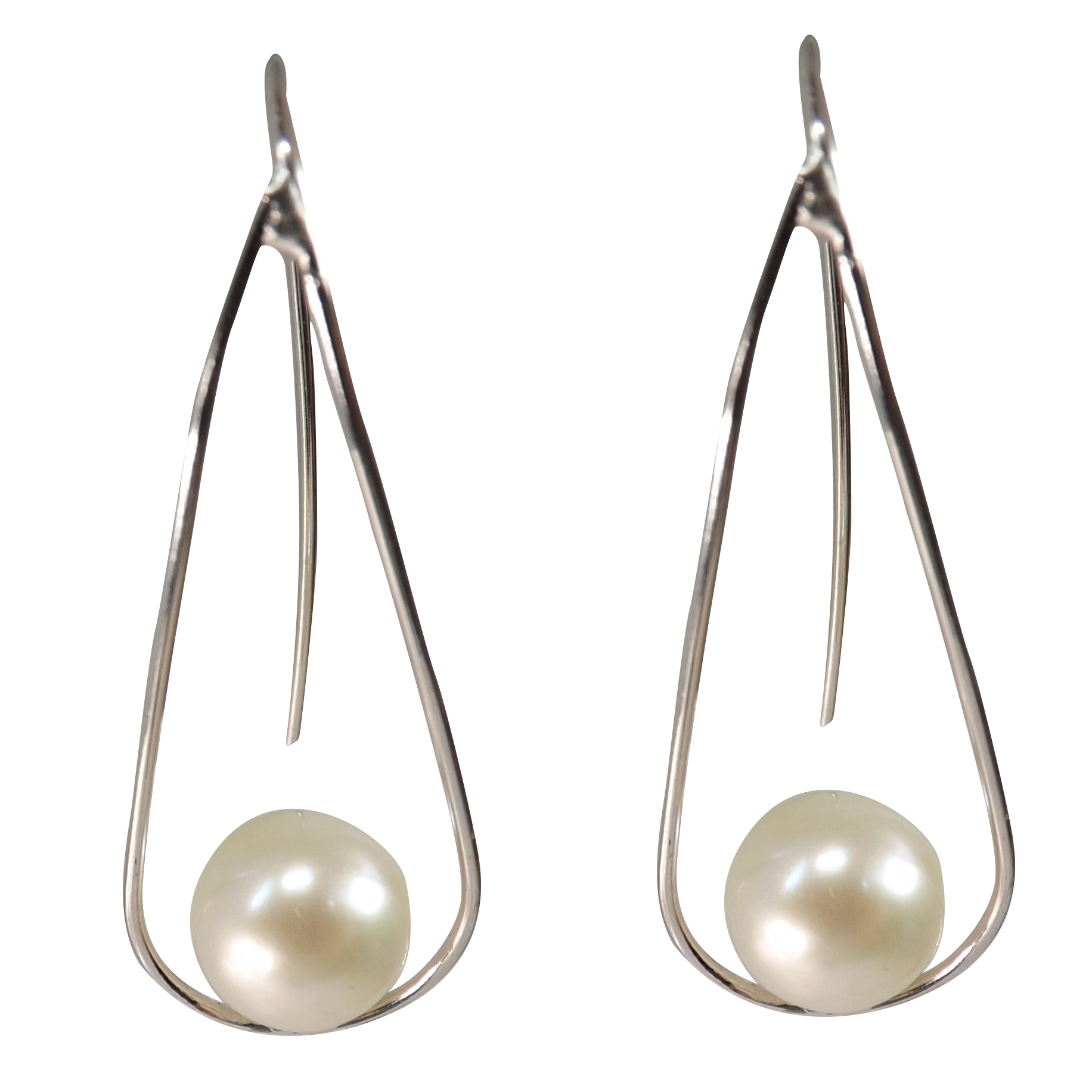 These drop pearl earrings are like pieces of modern art. The elongated teardrop shape and extra long ear wire are all in one piece of 925 pure sterling silver.