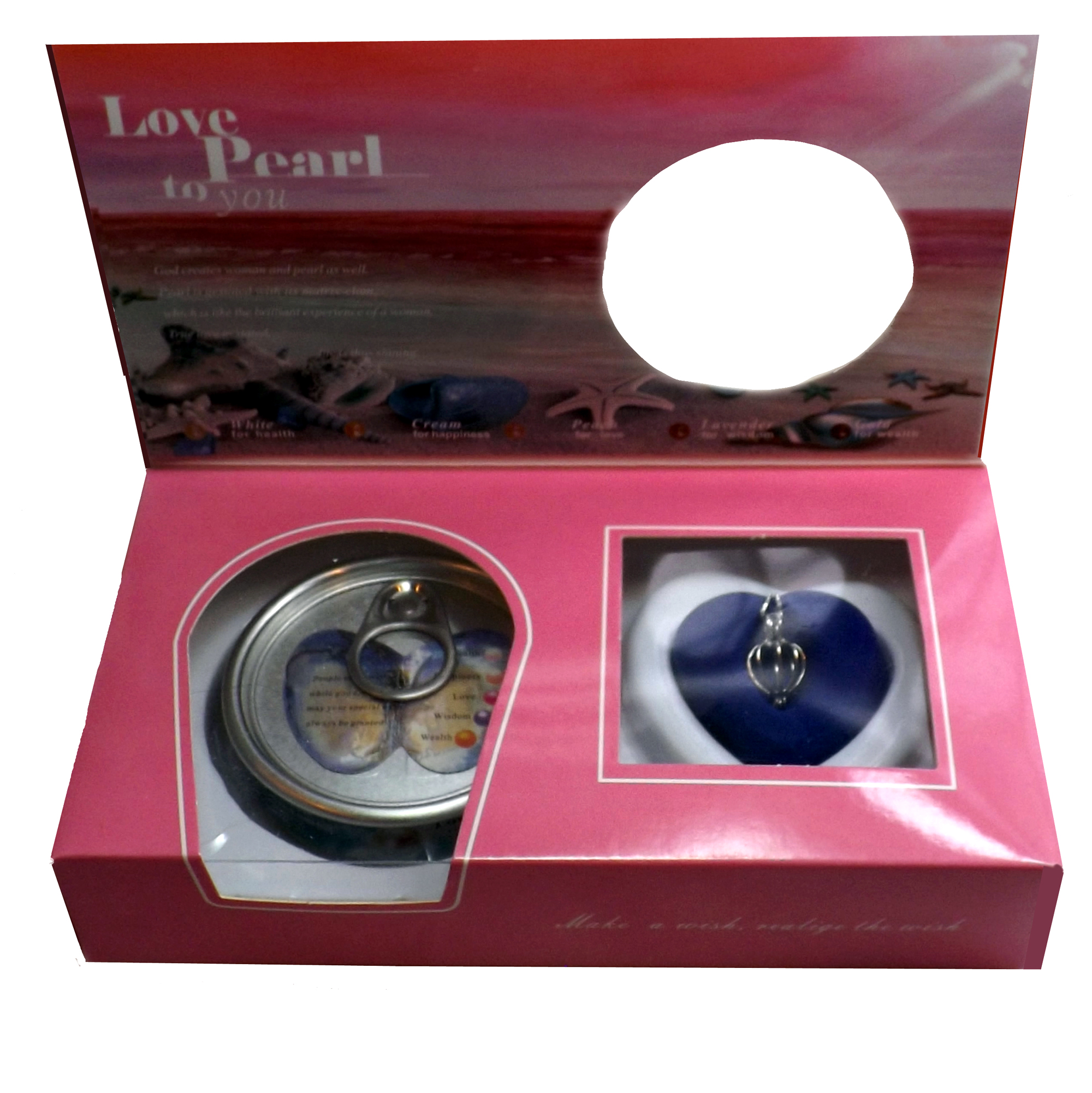 Each Love Pearl comes packaged inside it`s own see through can. The beautiful “cage” design of this easy-to-open pendant can hold or protect the pearl. You can also find it in the set. Click here or type “ZSS1550” as the product number in the search box to upgrade the pearl cage to a stamped 925 Sterling Silver Heart Shaped Cage.