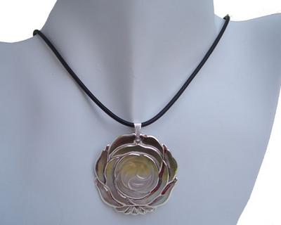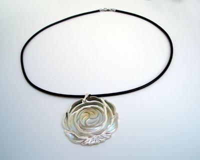 This beautiful, iridescent lining of an oyster, known as Mother of Pearl, pendant is absolutely stunning. Each mother of pearl flower pendant is carefully carved from a single solid piece of oyster shell. And make it into the shape of a blooming flower.