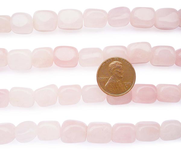 These are pink quartz crystal nuggets. They are approximately 10 x 12mm in size. There are approximately 34 beads on each 16 strand. Each strand has an approximate weight of 85 grams. Please note that these crystal beads are made of natural crystals so there will be slight variations in colors and shapes.”