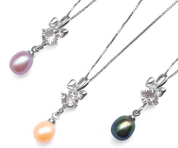 Enhance your look with this beautiful bowknot shaped pendant! It is made of a genuine 7-8mm teardrop shaped pearl. The pendant has an approximate size of 3/4″ x 1/2″. The setting is in base metal with 18K white gold overlay for tarnish-free protection.