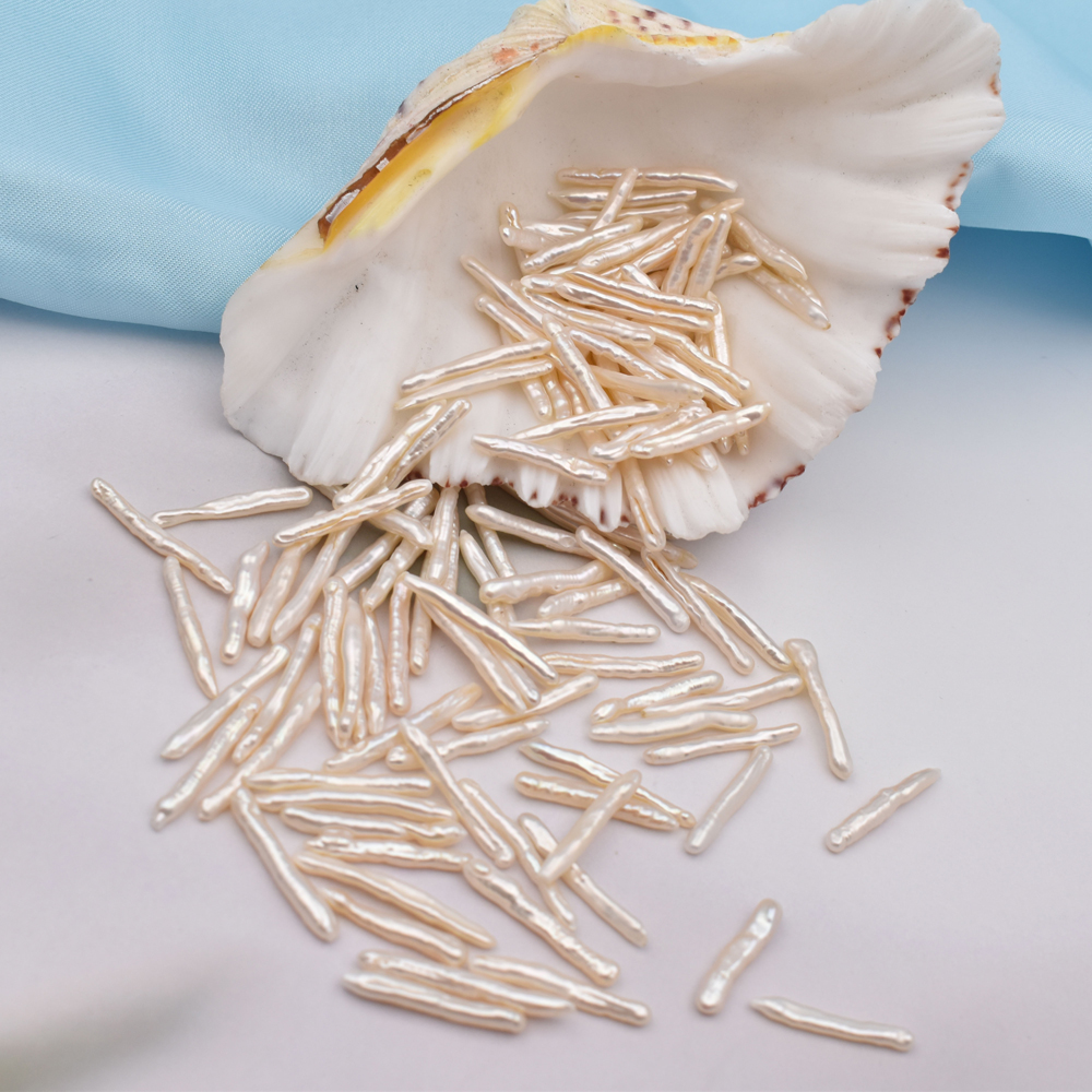 The loose stick or biwa pearls have an approximate length of 16-35mm, width about 3-6mm.