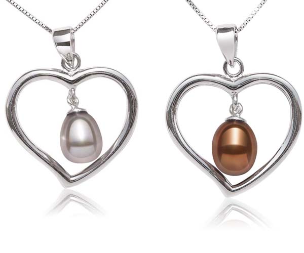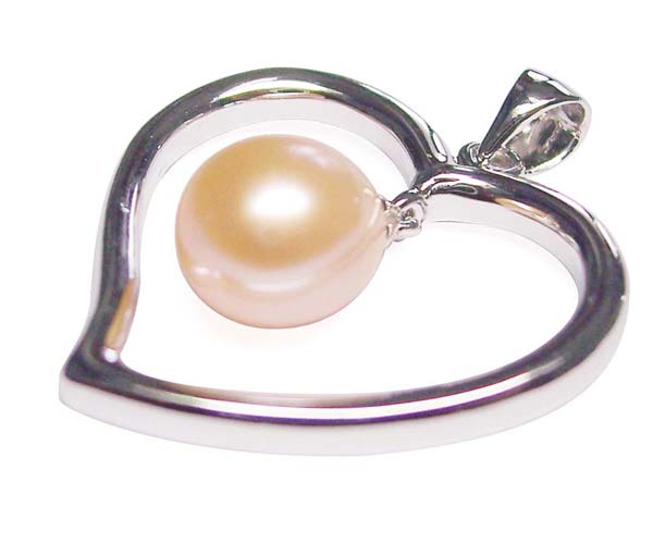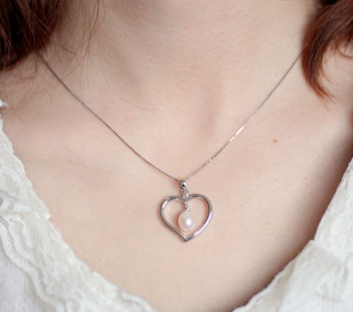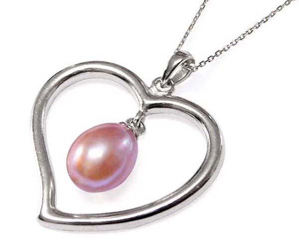 A large, heart shaped sterling silver pearl pendant is set by a high quality genuine 7-8mm pearl dangling in its heart. Simply elegant and irresistible!