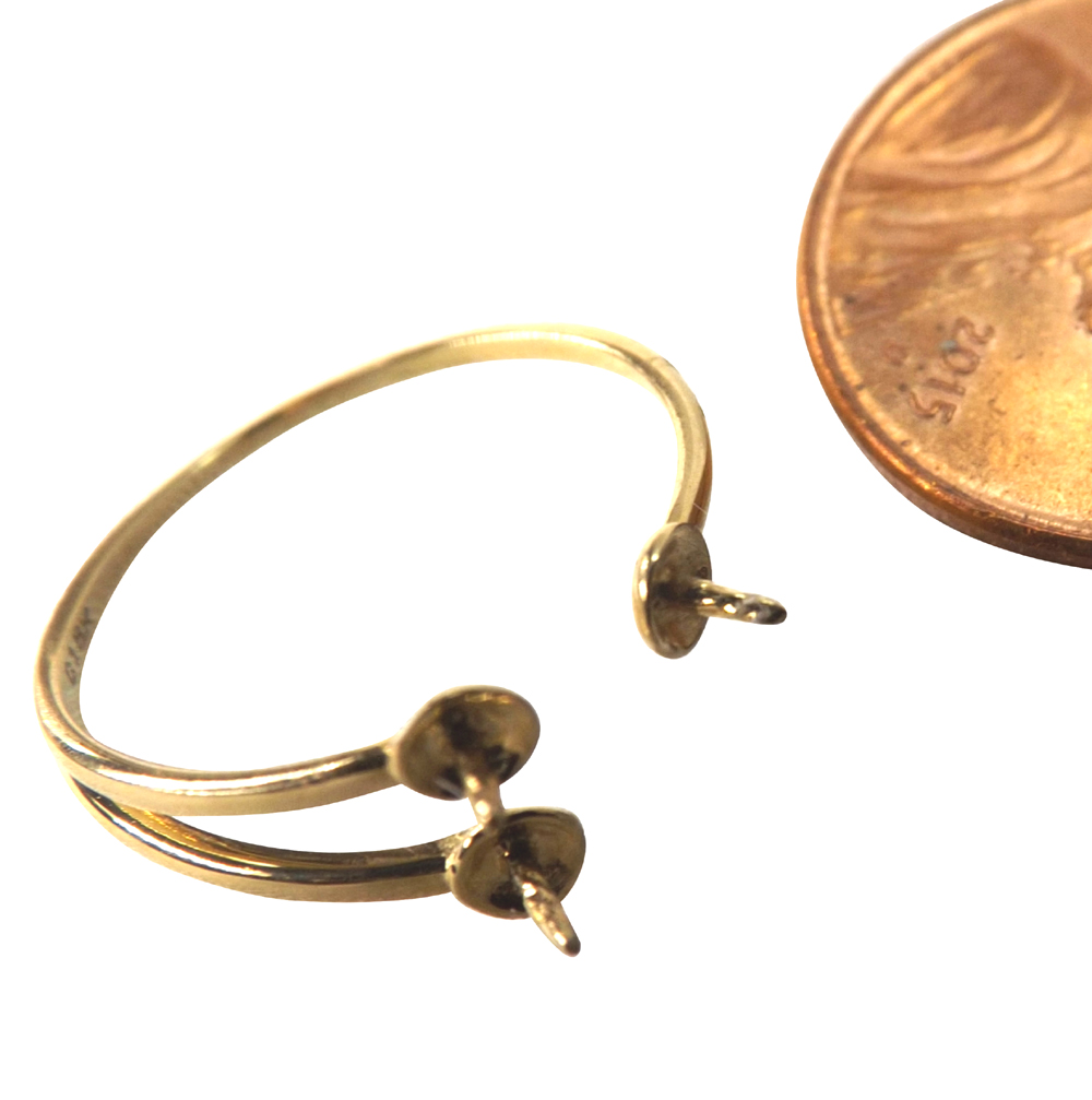 On one side there are two pearl settings, and on the other side, one pearl setting. Because the settings are rather close together, the pearls should be no larger than 3-4mm on the double setting side, and 4-5mm on the single setting side. You can use pearls with other half-drilled stones to make a truly one-of-a-kind ring. You will treasure it for many years to come.