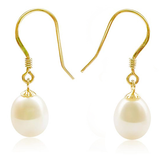 What better way to complete your elegant, yet contemporary look than with stylish french hook earrings? Looking good has never been so cheap either. These beautiful earrings are made from large 8-9mm AAA grade freshwater drop shaped pearl earrings in 18k gold. The 18K gold setting weighs about 0.6grams.