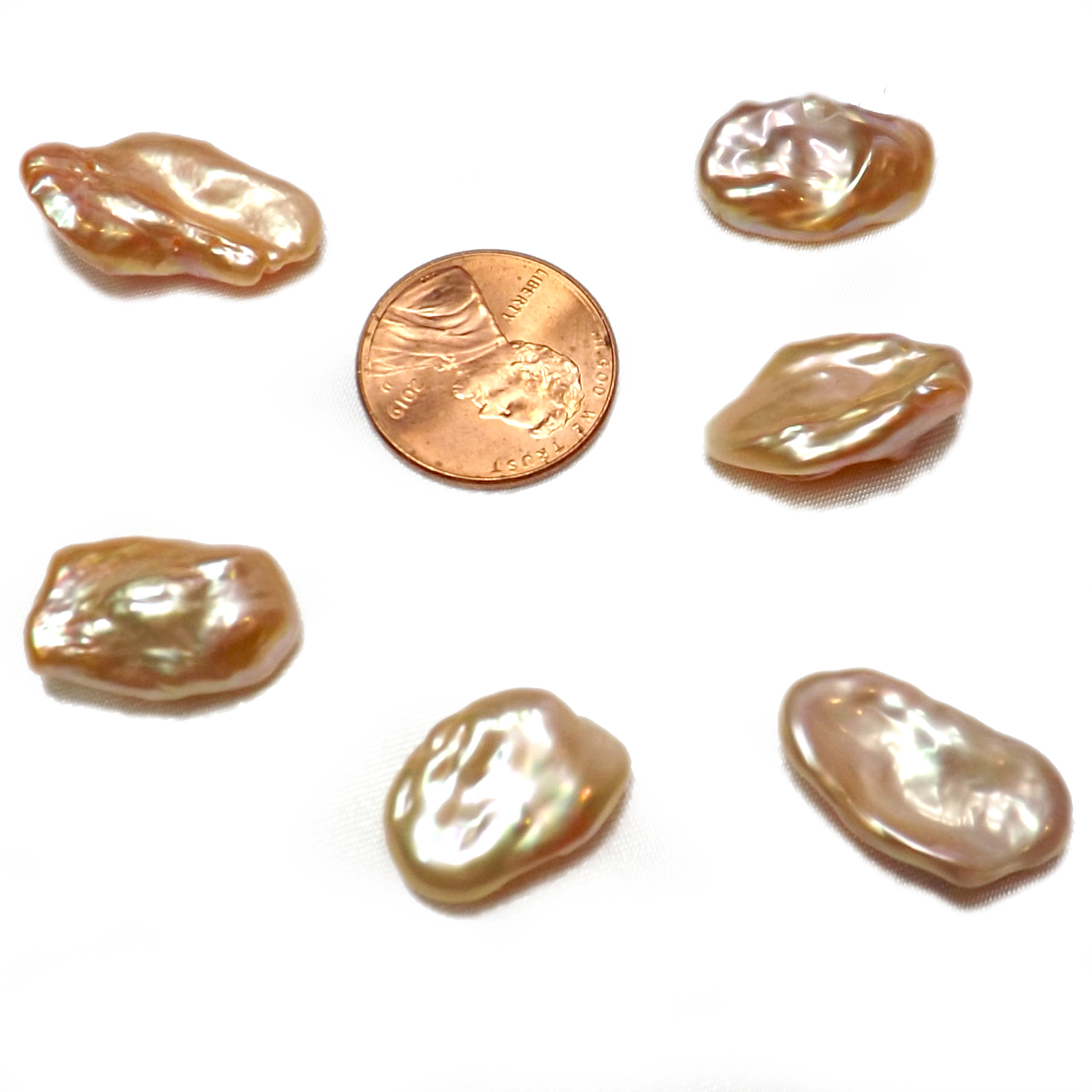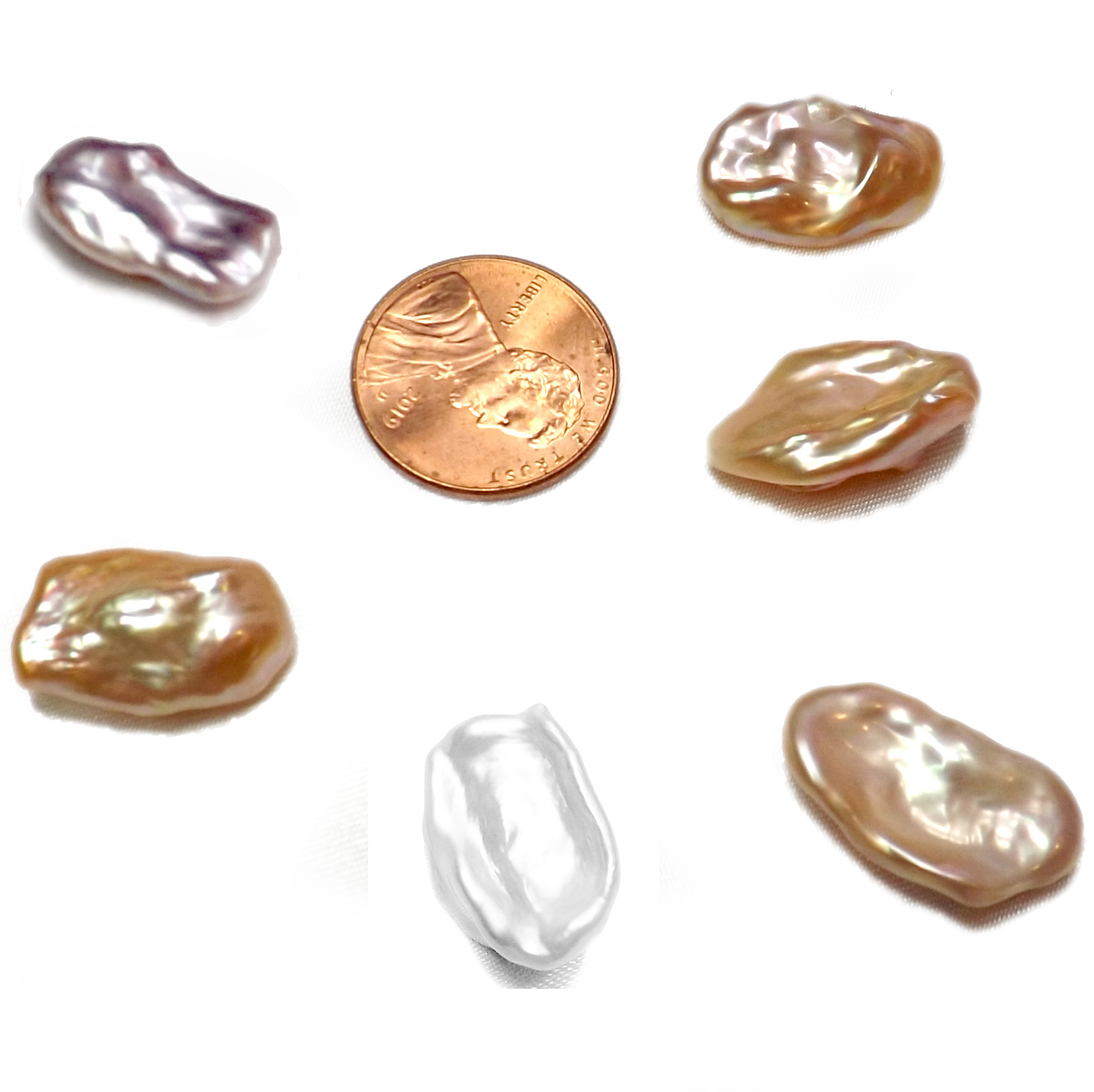 They are sold individually, and the sizes vary from 9mm x 15mm to 11mm x 17.5mm as these pearls are so unique, each one of them is a little different which is not surprising as they are totally made of nature, as shown in the pictures.