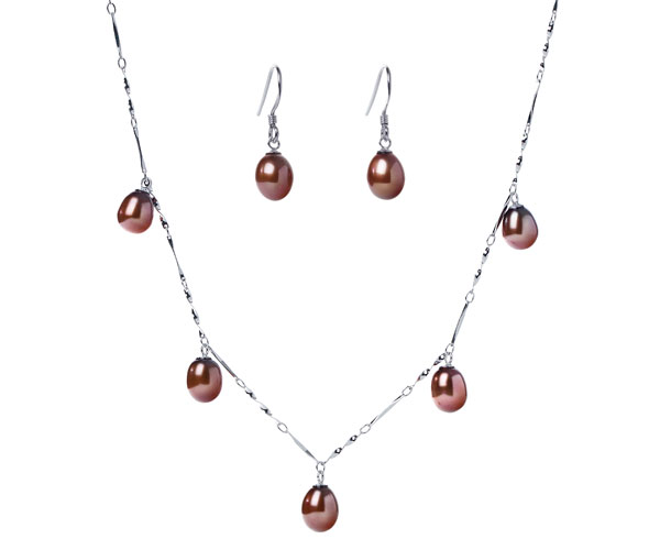 The matching pair of dangling sterling silver pearl earrings is also made of 7-8mm genuine freshwater cultured teardrop pearls. It is also set in stamped 925 sterling silver with 18k white gold overlay to be tarnish-free.