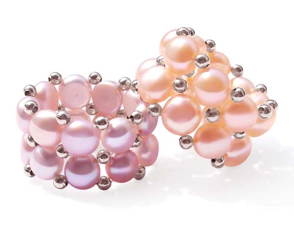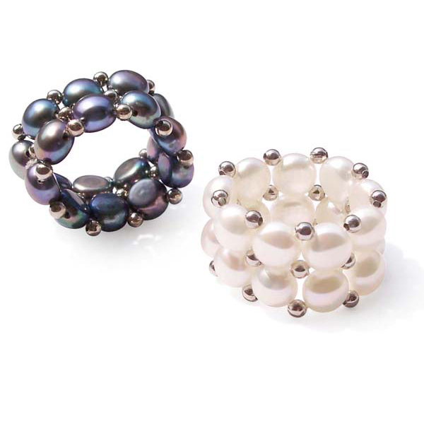 The rings are made from our lustrous 6.5-7.5mm AAA quality pancake pearls and alternating metal beads. The adjustable rings can fit sizes six through ten easily.