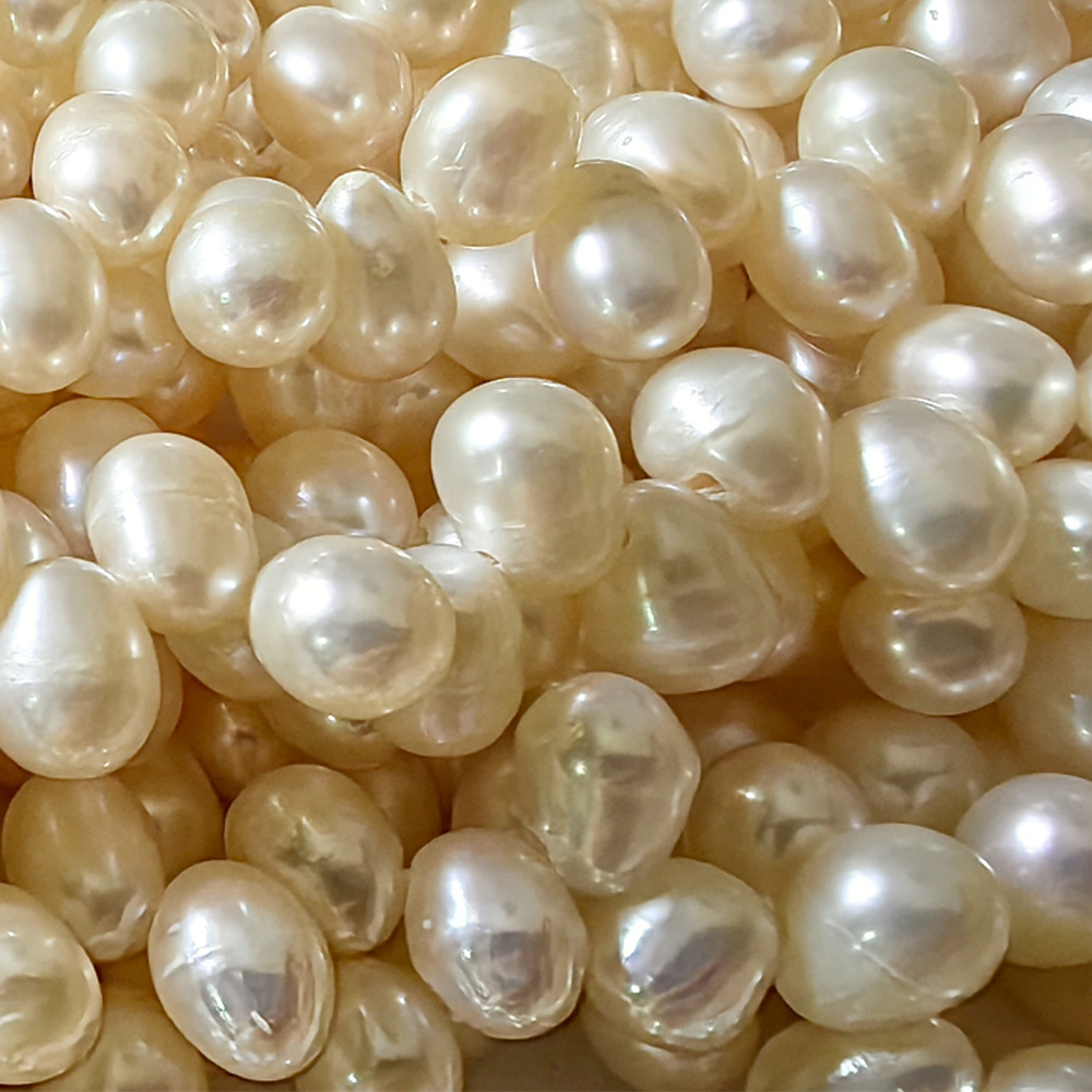 These 6x7mm top drilled AAA quality peanut pearl strands have very high luster and hardly any flaws. They are pre-drilled with larger hole of 1.2mm for making your unique jewelry with ribbons or leather cords.