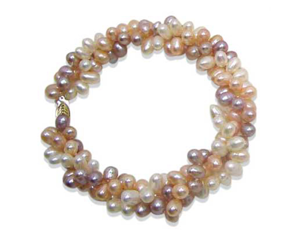 Multi-colored freshwater cultured pearls with one row white, one row pink and one row lavender to stand out for their luminous beauty. It will surely to complement her many moods.