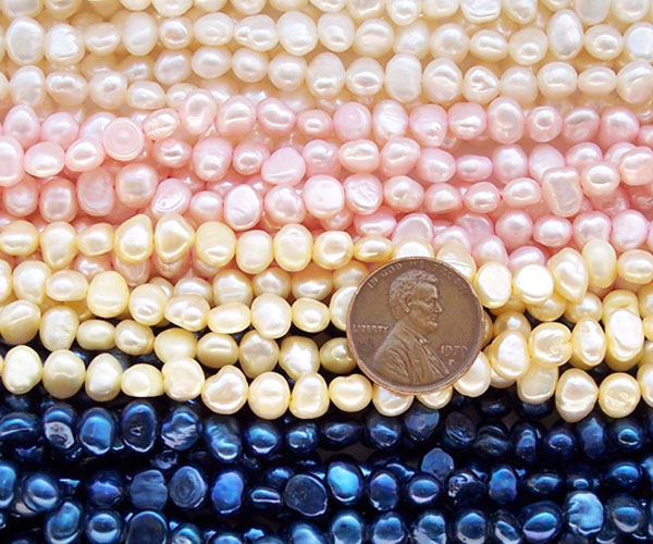 These are 5-6mm nugget or baroque shaped pearls (with one side flat). Although these pearls have relatively very smooth surface, they are still free formed and very minor surface markings exist on these strands. Since people who love baroque pearls for their natural looking.